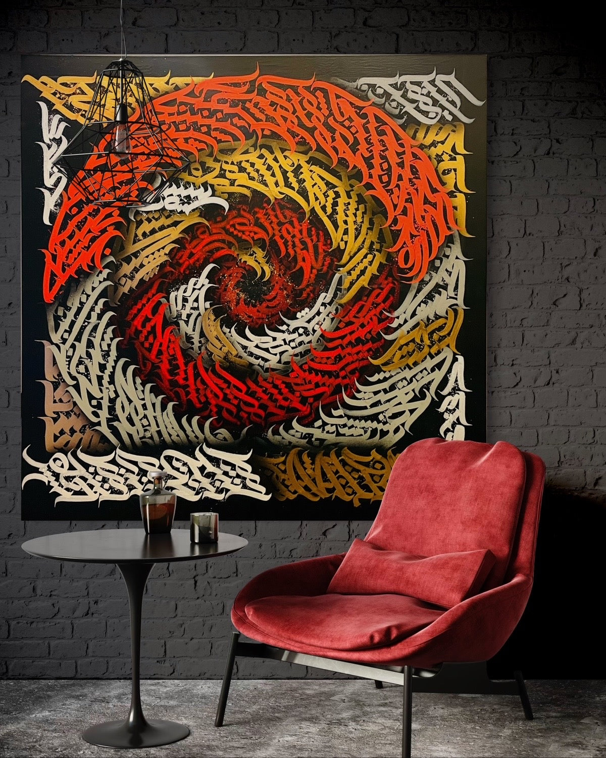 My name is Burnzy raised in the south west of the UK, I am a versatile artist who began my creative journey mastering various forms of calligraphy. I then transitioned into tattooing, with over a decade of experience in tattooing lettering and extensive global travels, I have now shifted my focus to elevate my passion for calligraffiti art and became an exhibiting artist. Infusing flow into my pieces with captivating calligraphy brush strokes, my art pops with vibrant colours and unique layouts, drawing inspiration from my travels and urban environments. Each of my creations is a one-off original, showcasing a blend of creativity, originality, flow and worldly influences
